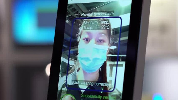 Empresas especializadas em identificação biométrica já começam a oferecer mecanismos de detecção sintomas de coronavírus. Terminais inteligentes da chinesa ZKTeco, por exemplo, são capazes de rastrear sintomas da Covid-19 por meio de reconhecimento facial. Segundo a empresa, o equipamento leva apenas uma fração de segundo para determinar a temperatura de uma pessoa com um desvio de 0,5 grau. A aferição de temperatura também pode ser realizada por detecção de palma da mão à distância, ou seja, sem precisar tocar no aparelho.